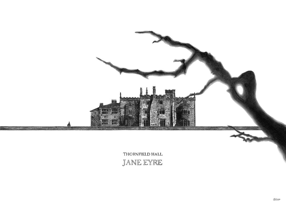Seth Insua's fictional buildings are now available to buy in miniature. The Edifiction Collection vol.I contains 18 postcards, featuring the first six drawings in the series: Mr Darcy's Pemberley from Pride & Prejudice, 1984's Ministry of Truth, Jane Eyre's Thornfield Hall, Castle Dracula, 221B Baker Street from Sherlock Holmes, and Heorot Hall from Beowulf. The postcards are presented in a premium gift box, embossed with the name of the artist.